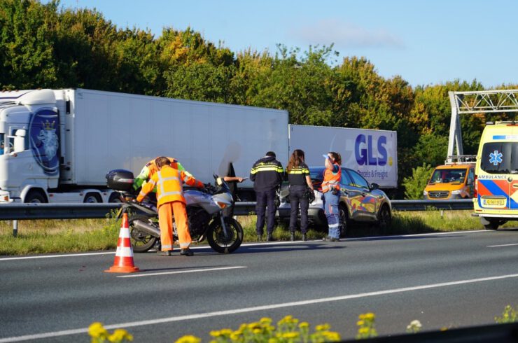 De automobilist raakte niet gewond, maar de motorrijder moest wel medische hulp krijgen. Het afsluiten van de linkerrijstrook zorgde voor een file van zo’n vijftig minuten.