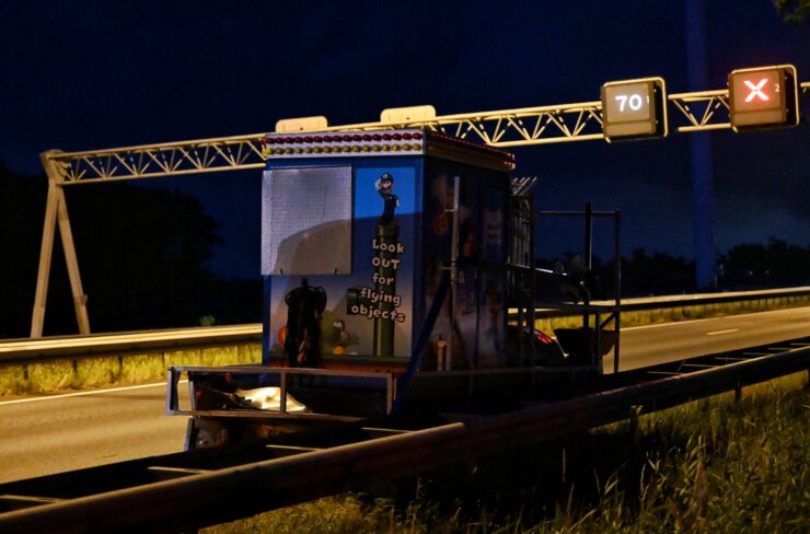 Auto botst op aanhanger met kassahokje van kermisattractie op A58