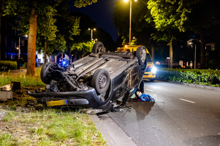 Een bergingsbedrijf heeft de auto weer rechtgezet en afgevoerd. Hiervoor was de weg tijdelijk afgesloten. De politie onderzoekt nog hoe het ongeval heeft kunnen gebeuren.